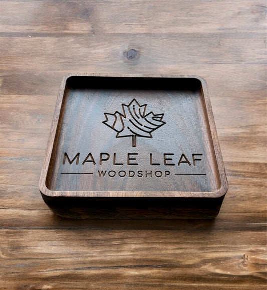 Business Logo Hardwood Catchall Tray | Personalized | Maple | Cherry | Walnut