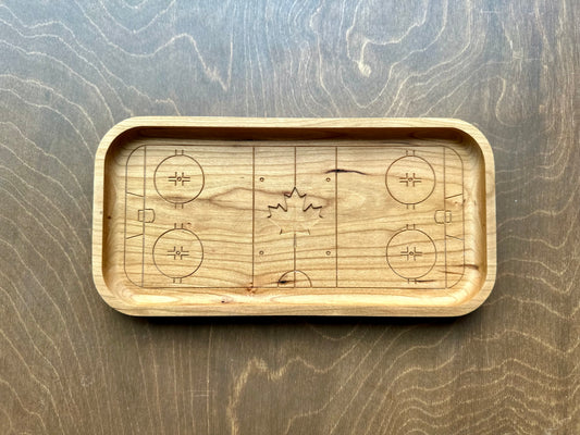 Hockey Rink Shape Hardwood Catchall Tray | Trivet | Serving Board | Charcuterie | Own Logo | Maple | Cherry | Walnut | Custom | Personalized