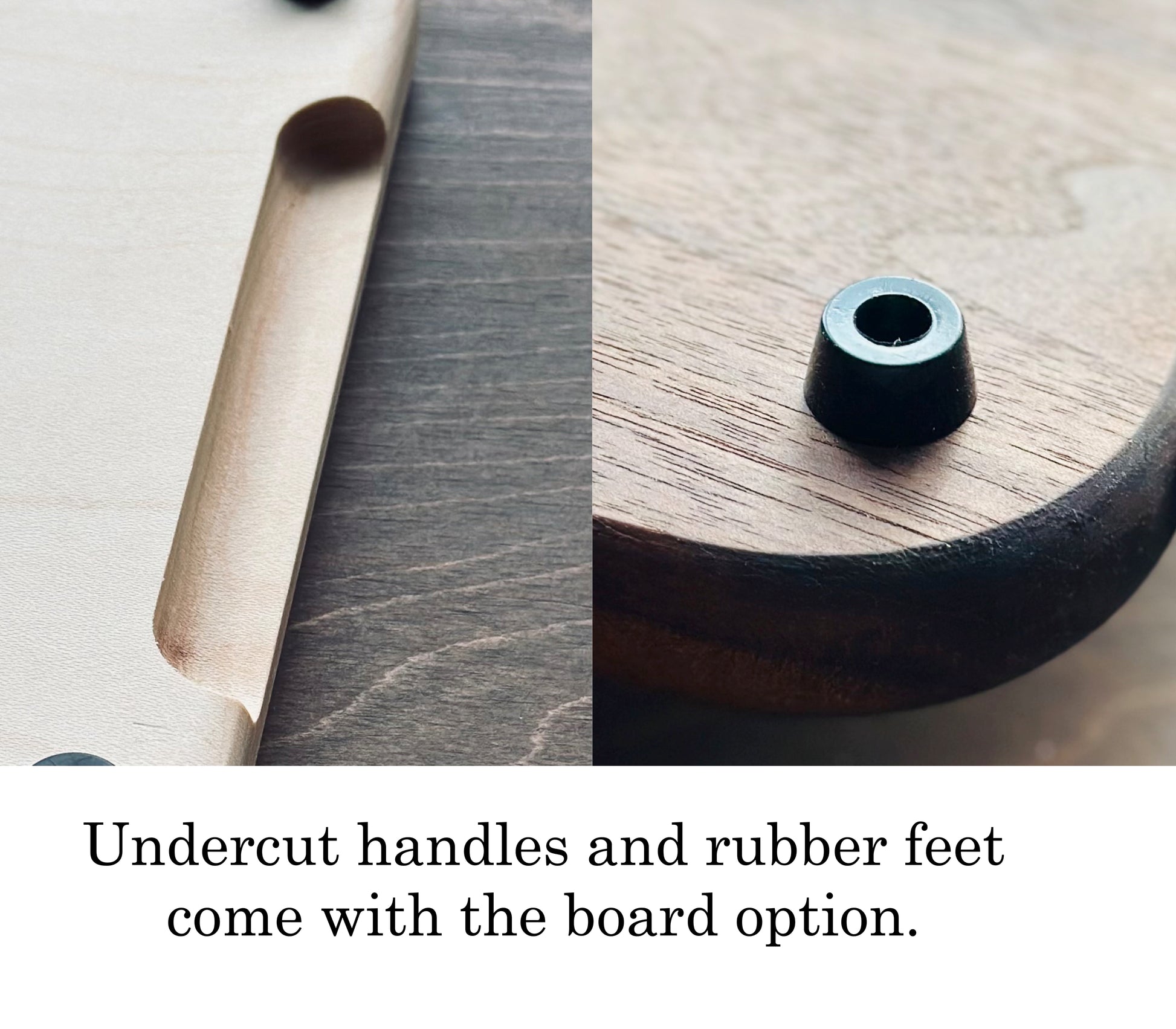 13” x 7” x 0.75” Board (This option comes with a pair of undercut handles and 4 rubber feet)