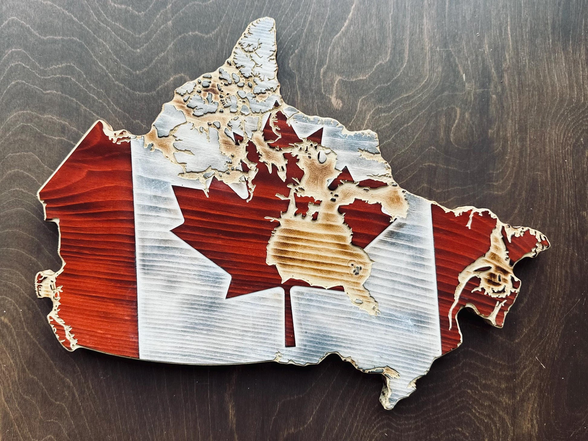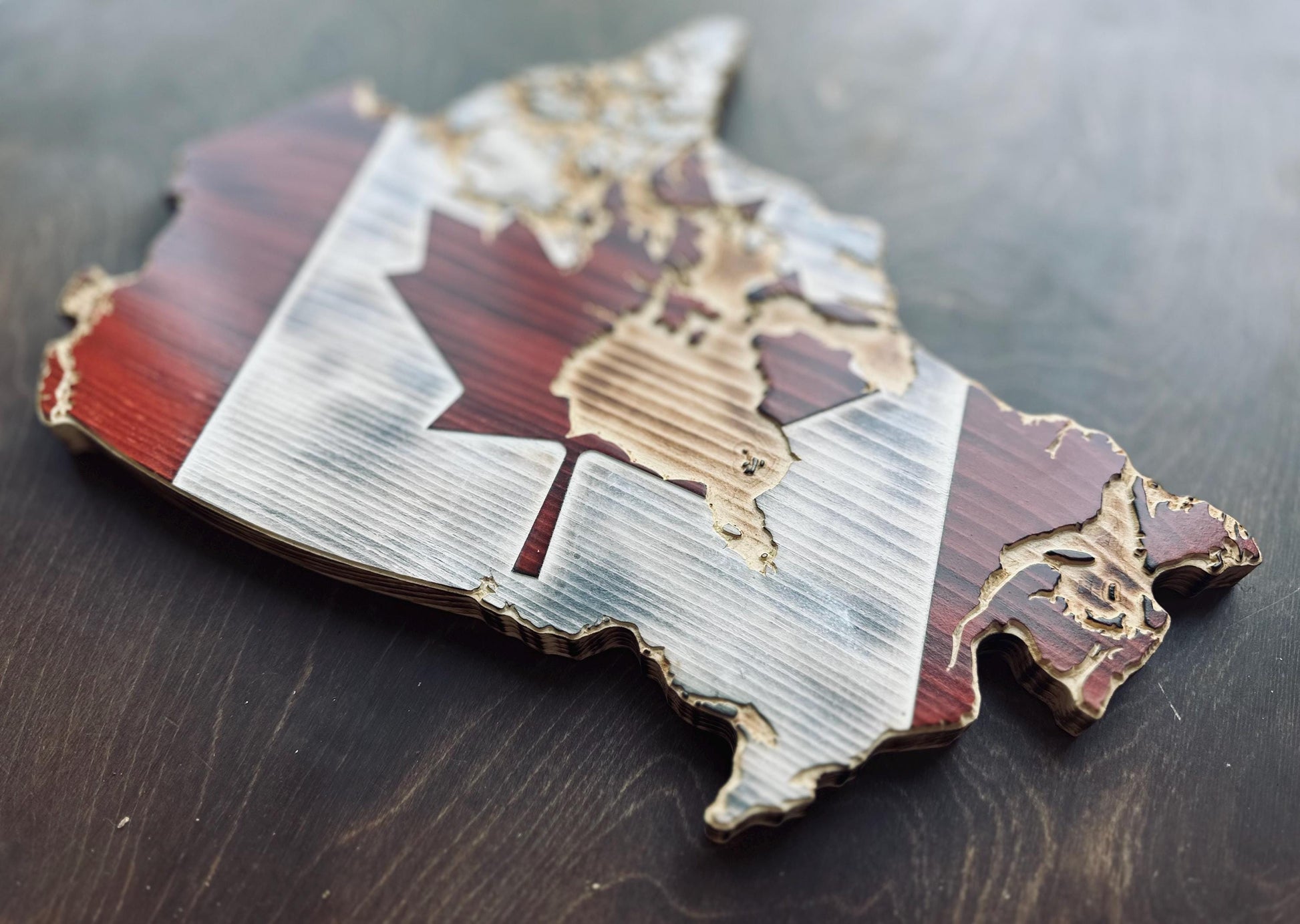 Wooden Canada Map Flag with Island Details | Ready to Ship